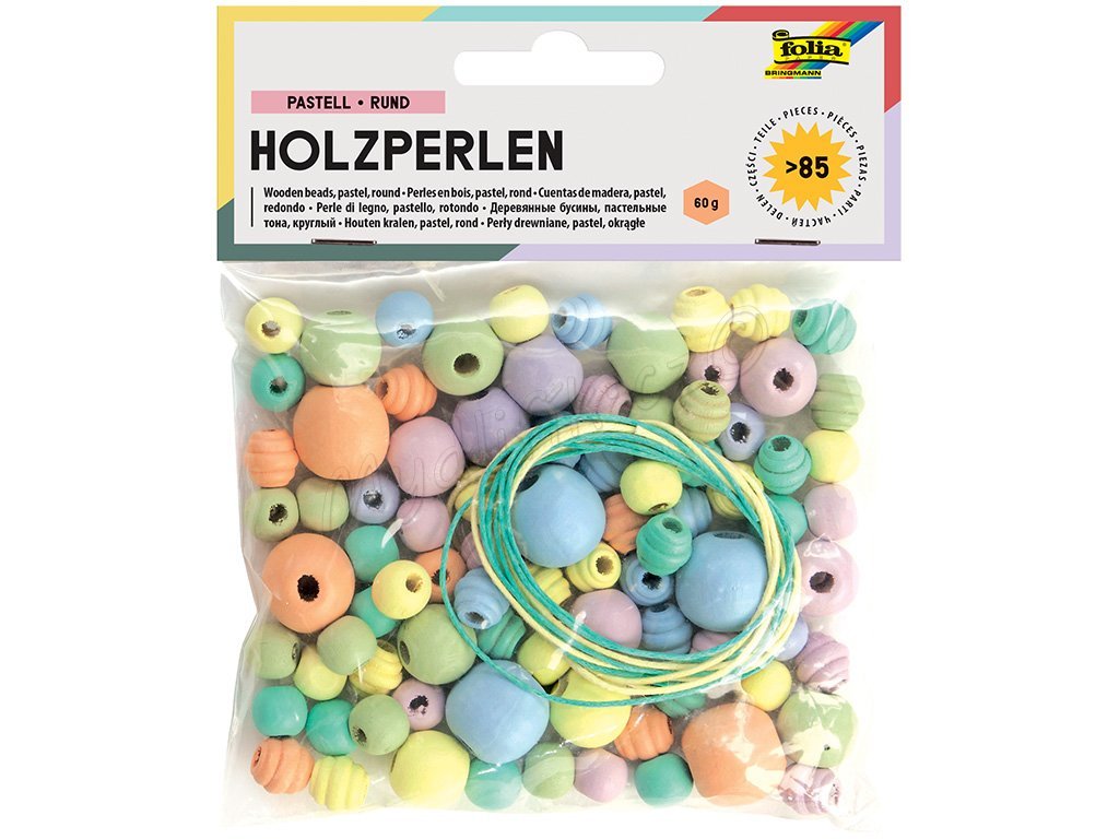 Dřevěné korálky - pastelové kulaté - 85 ks
