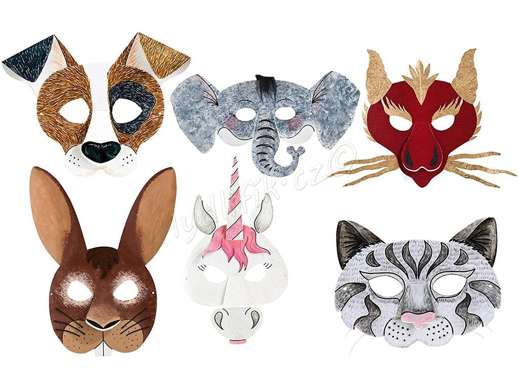 - 6 různých masek - pes, kočka, slon, zajíc, jednorožec, drak
