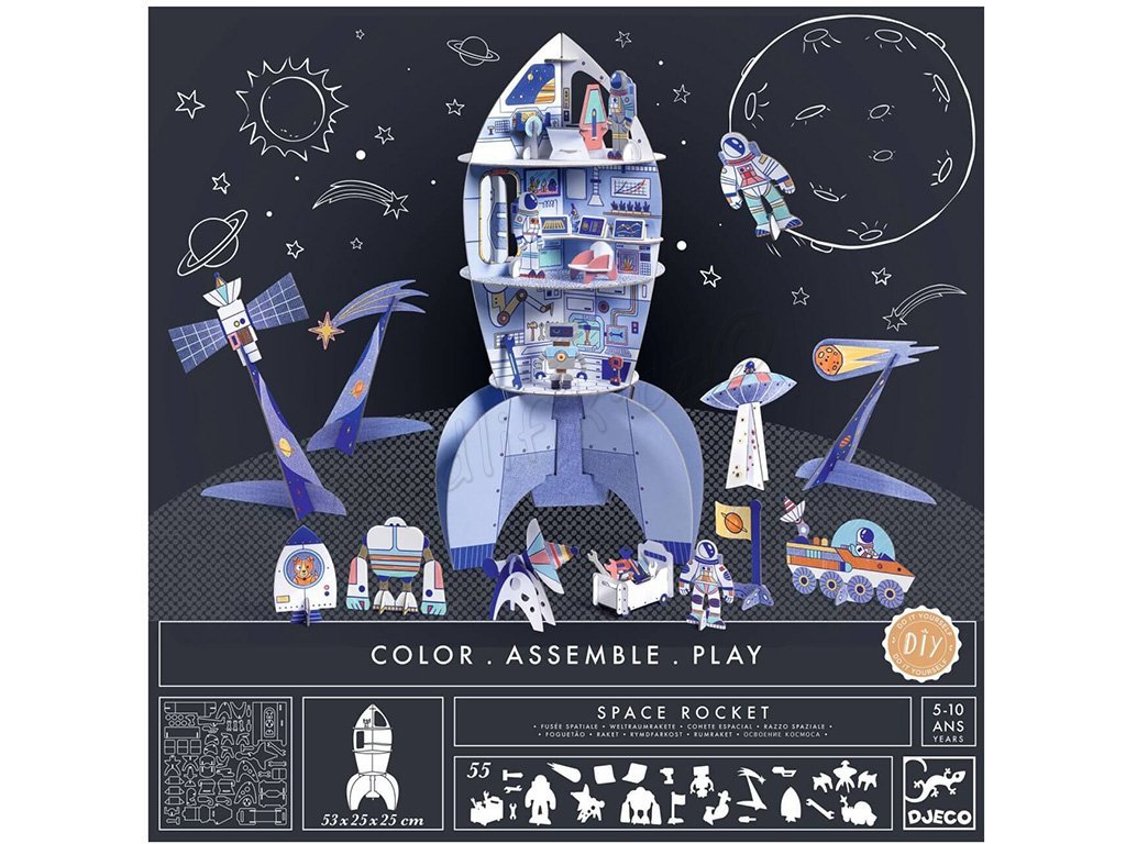Spojení kreativního vybarvování a stavění 3D modelu zabaví každého malého astronauta klidně na celé odpoledne (nebo na víkendovou misi k Saturnu).A až bude hotovo? Hurá na intergalaktické dobrodružství s oblíbenými figurkami (do pater se vejdou figurky do cca 8 cm).Velikost balení: 37 x 38,5 x 3 cm |