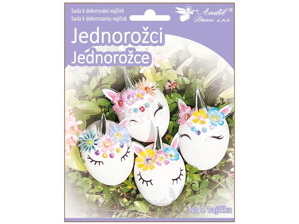 S touto sadou snadno vytvoříme originální barevná vajíčka s krásnými jednorožci. Se zdobením vajíček rády pomohou i malé děti, které mohou vajíčka polepit samolepkami.